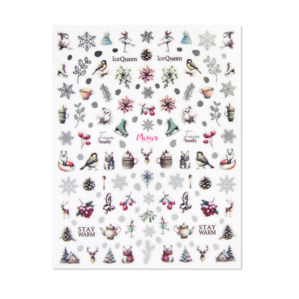 Fedezd fel a tél mesés világát téli hangulatú öntapadós körömmatricánkkal! Gyengéd, pasztelles hópelyhek, pihe-puha sapkás figurák, korcsolyacipők, bogyós ágak, forró italok, aranyos téli állatkák és jégkirálynős motívumok teszik ezt a matricát igazán különlegessé.